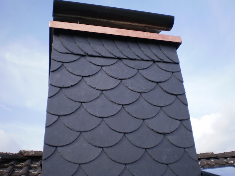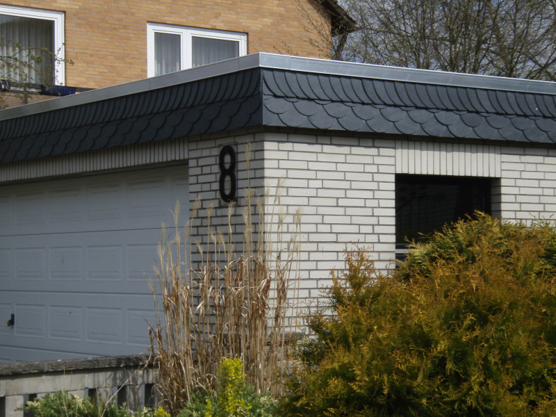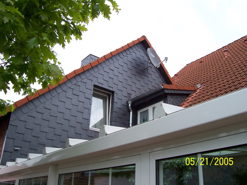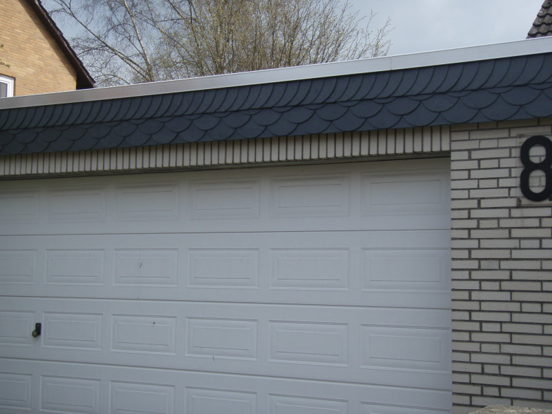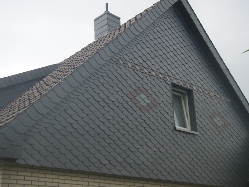 Aber auch als Läufer am Ortgang oder Stirnbrett sieht der der Schiefer schön aus und erspart einem das Streichen des Holzuntergrundes.
