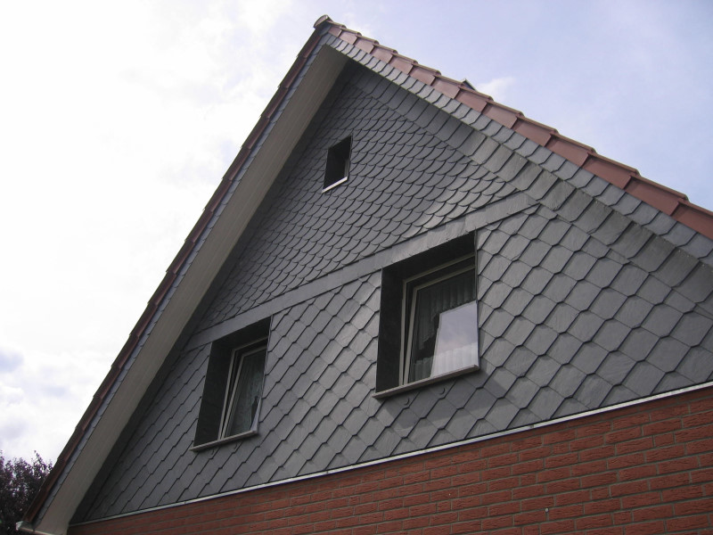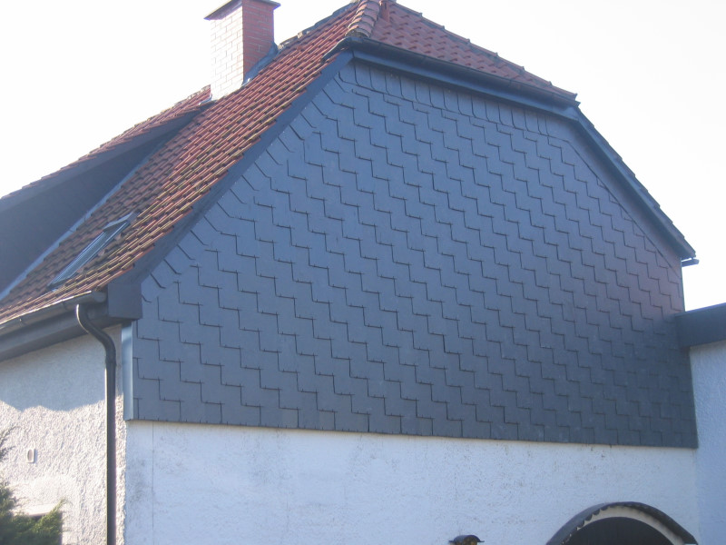 Alternativ zum Naturschiefer gibt es Faserzementplatten, einen künstlich hergestellten Werkstoff.
